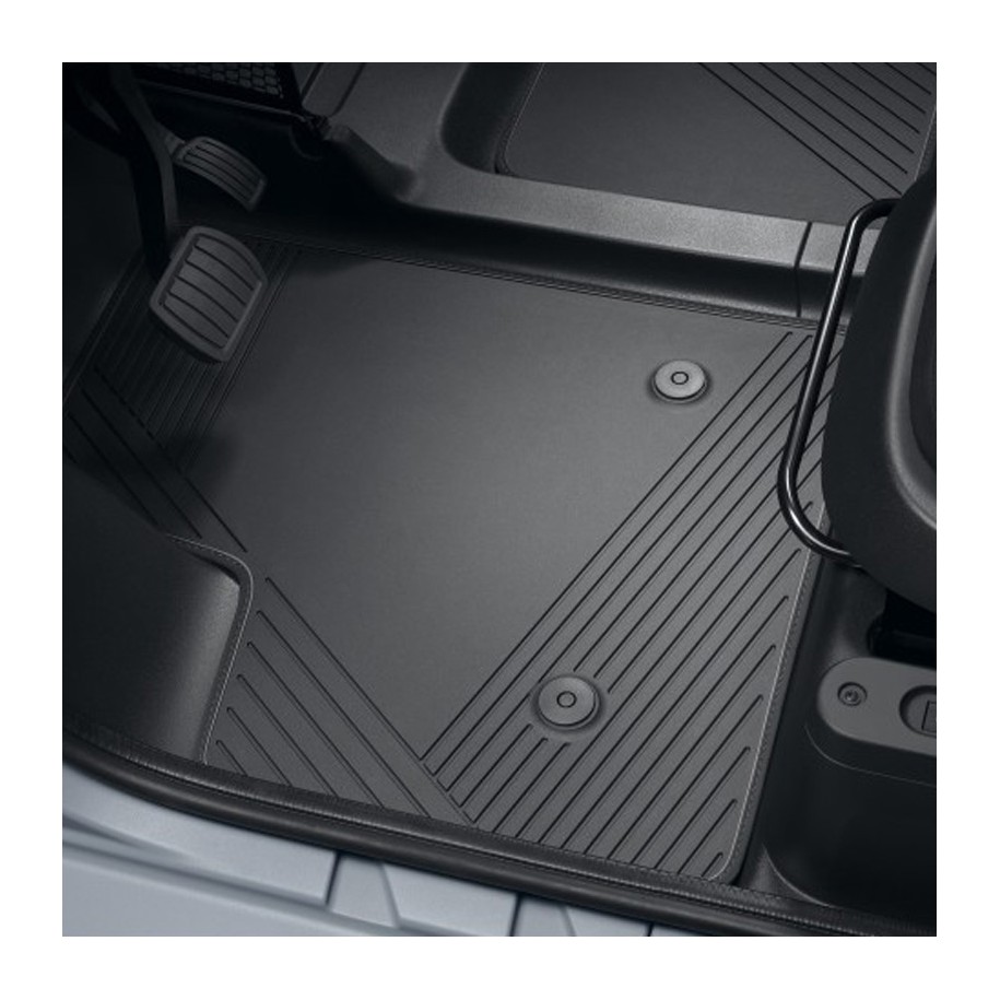 - Jeu de 2 tapis conducteur et passager en caoutchouc de couleur noir.