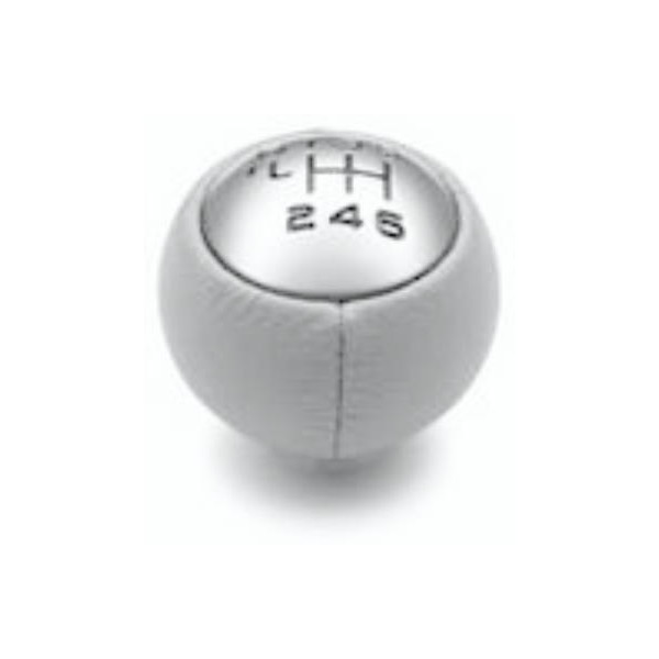 - Pommeau de levier de vitesses en cuir gris avec pastille en chrome satiné pour véhicules équipés d’une boîte de vitesses manuelle à 6 rapports.