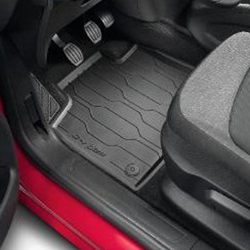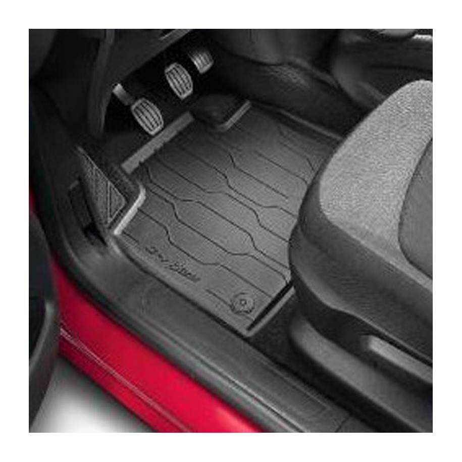 UN JEU DE 2 TAPIS AVANT ET 1 TAPIS DEUXIÈME RANGÉE MONOBLOC EN CAOUTCHOUC EN FORME DE COULEUR NOIR.